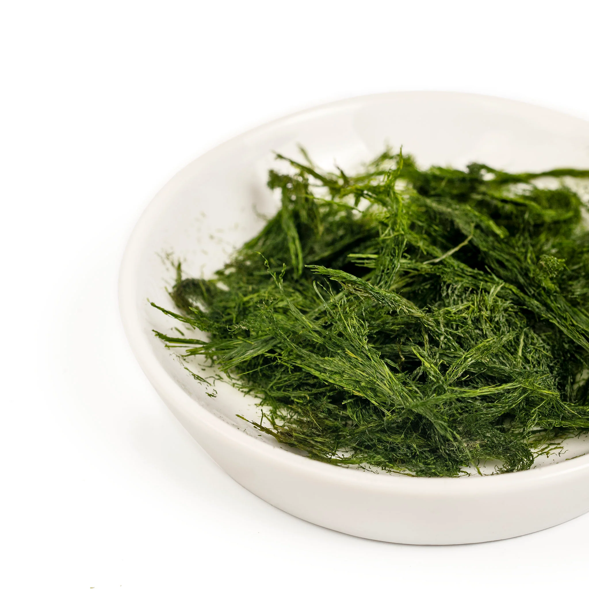 This naturally dehydrated seaweed exhibits a delightful ocean aroma, vibrant green color, delicate mouthfeel, and it will easily jazz up your dishes. It was developed through innovative technologies and committed efforts by aspiring visionaries to achieve a sustainable lifestyle using the power of sea vegetables. The development team successfully collected seeds of “suji aonori” seaweed, one of the most aromatic kinds, grown in the ocean around Japan, and germinated them into seedlings in the lab. Then the seedlings are cultured in land-based circular pools filled with pure, mineral-rich underground seawater. This aqua-culture system enables stable water temperatures and optimal sunlight absorption, accelerating growth throughout the year. This ensures the production of the highest quality seaweed while minimizing any impact on the environment. Extremely aromatic and with bright green color, Dried Suji Aonori is a great garnish for sushi, salad, cold appetizers, noodle soup, toast, and pizza. It can be perfect mix-ins for dressings and sauces as well. Also, wild suji aonori is rarely available in the market, but thanks to this aqua-cultured Dried Suji Aonori, now you can enjoy suji aonori all year round.