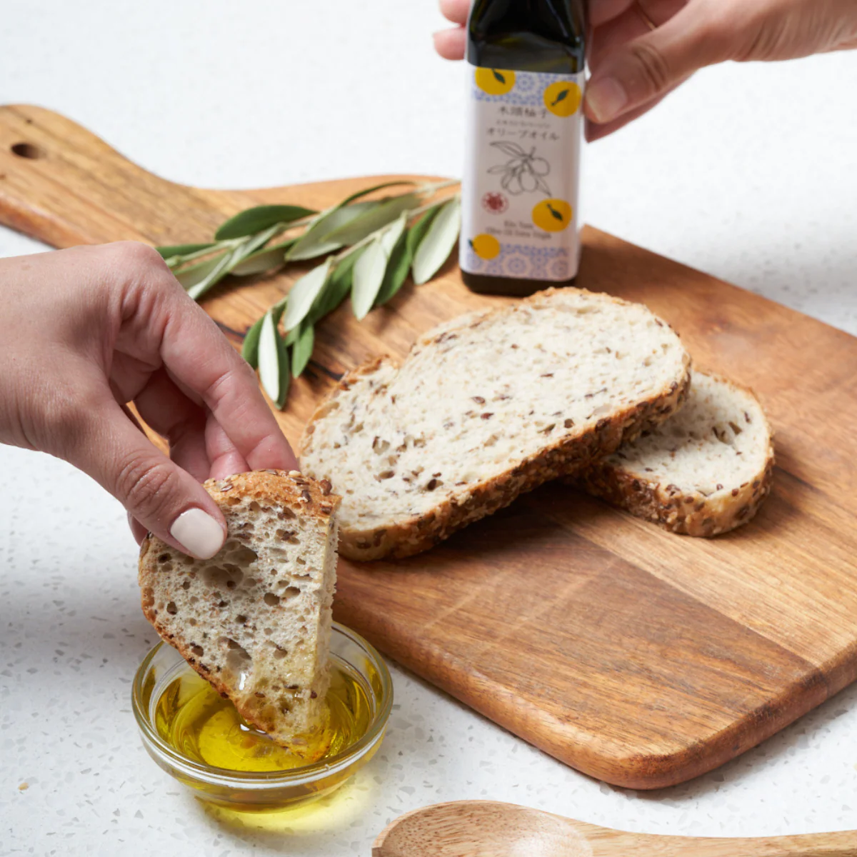 Just like other EVOOs, you can drizzle it over a salad, add it to a salad dressing, dip bread into it, or use it as a finishing sauce to dishes like carpaccio, bruschetta, grilled seafood, soups, pizza, and pasta. If you serve it on the side of your cheese plate or charcuterie, you can enjoy a variety of flavors with assorted pairings. Its fresh yuzu flavor is good with Japanese cuisine as well—try it with sashimi and tofu dishes! Also, it is wonderful with creamy desserts—enjoy it by drizzling it over ice cream, cheesecake, or yogurt.